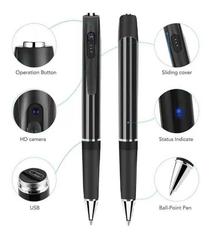 Nuestra cámara espía con bolígrafo no se diferencia de un bolígrafo normal. Tiene la capacidad de tapar la lente, por lo que es casi imposible darse cuenta de que es una cámara. Puede colocarse en cualquier lugar y puede colocarse con otros bolígrafos y lápices y nadie se daría cuenta.