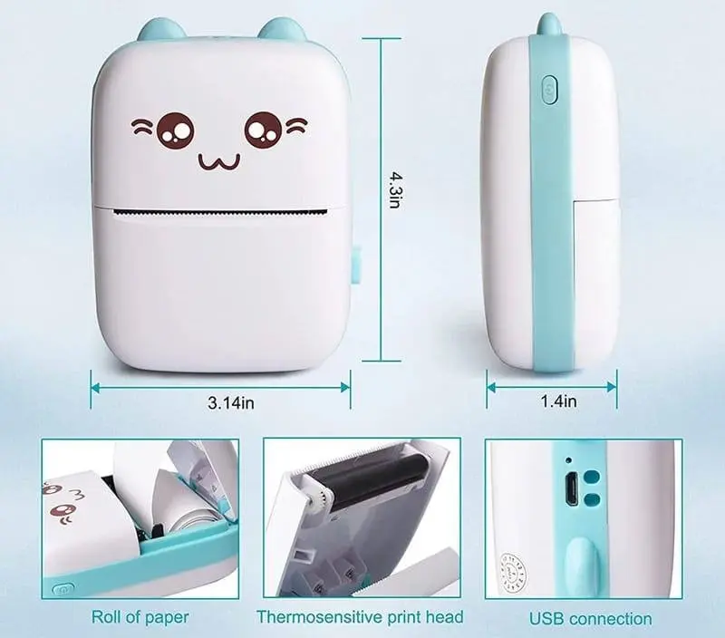 - La mini impresora de dibujos animados es muy linda, pequeña y ligera, y fácil de usar.